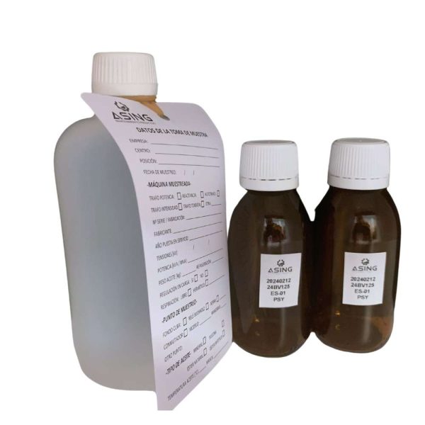 Kit de toma de muestras compuesto por dos botellas de vidrio ámbar de 125ml o una de 250 ml y una botella de HDPE de 500ml con obturador interior.